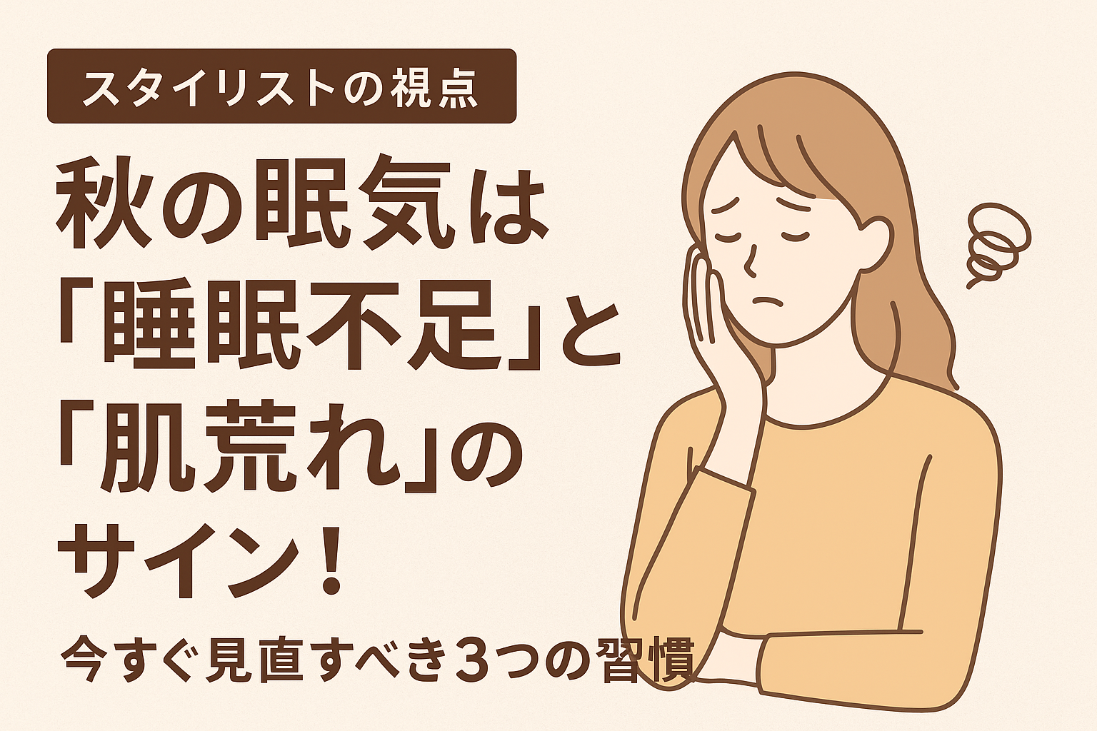 ヘアケア 【スタイリストの視点】秋の眠気は 「睡眠不足」 と 「肌荒れ」 のサイン!今すぐ見直すべき3つの習慣 秋になって、なぜか「やたら眠い」「週末も疲れが取れない」と感じていませんか? もし、その眠気と一緒に肌荒れや乾燥が気になっているなら、要注意です。 それは単なる夏の疲れではなく、あなたの自律神経と美肌ホルモンが乱れているサイン... 2025.10.05 ヘアケア