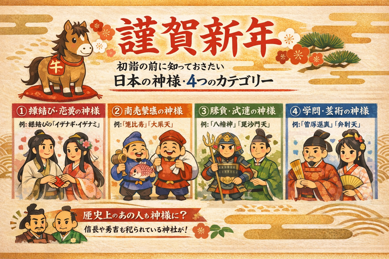 日本の神様を4つのカテゴリーに分けて分かりやすく紹介します。