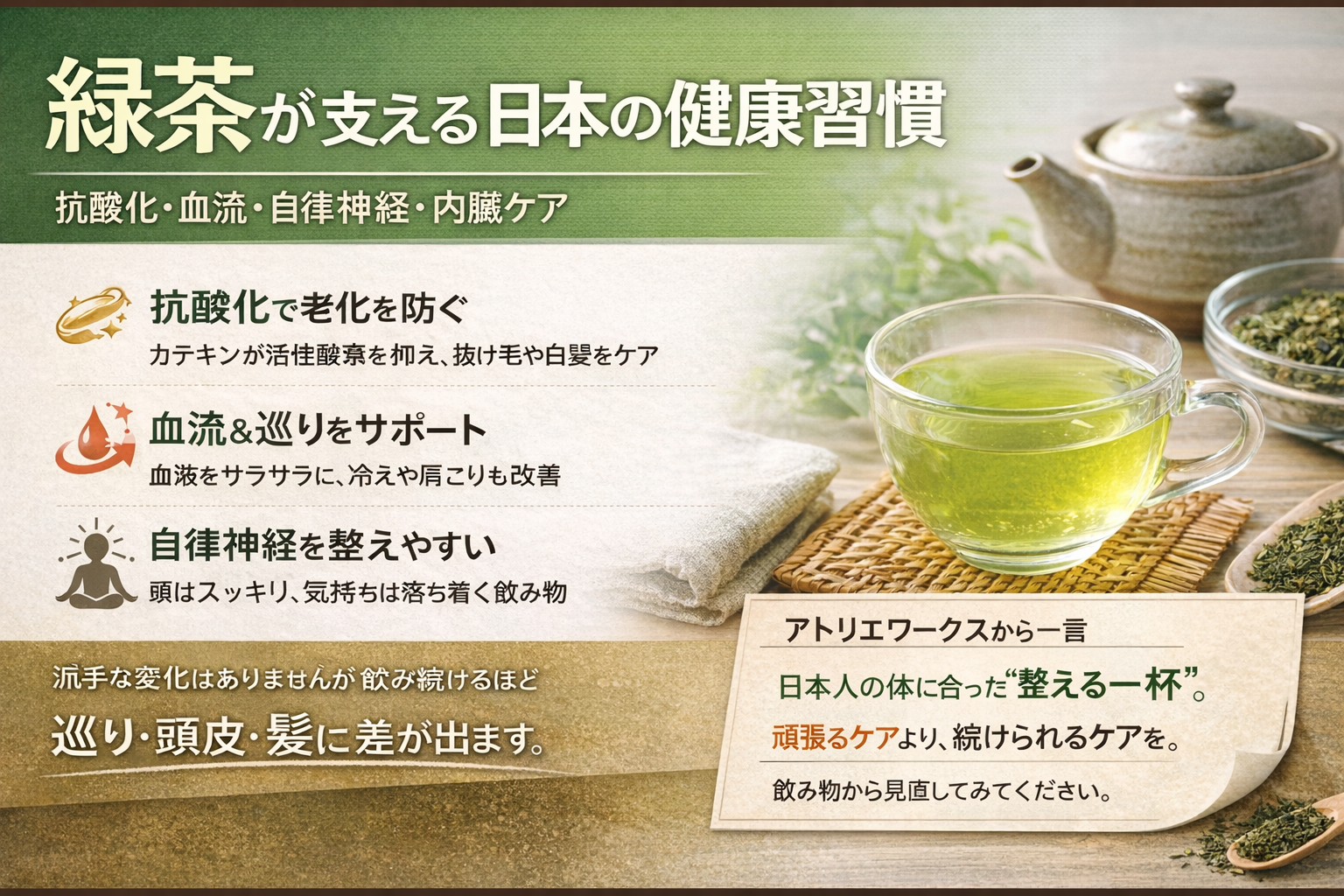 緑茶はなぜ体にいい?抗酸化・自律神経・頭皮ケアまで支える日本の健康習慣