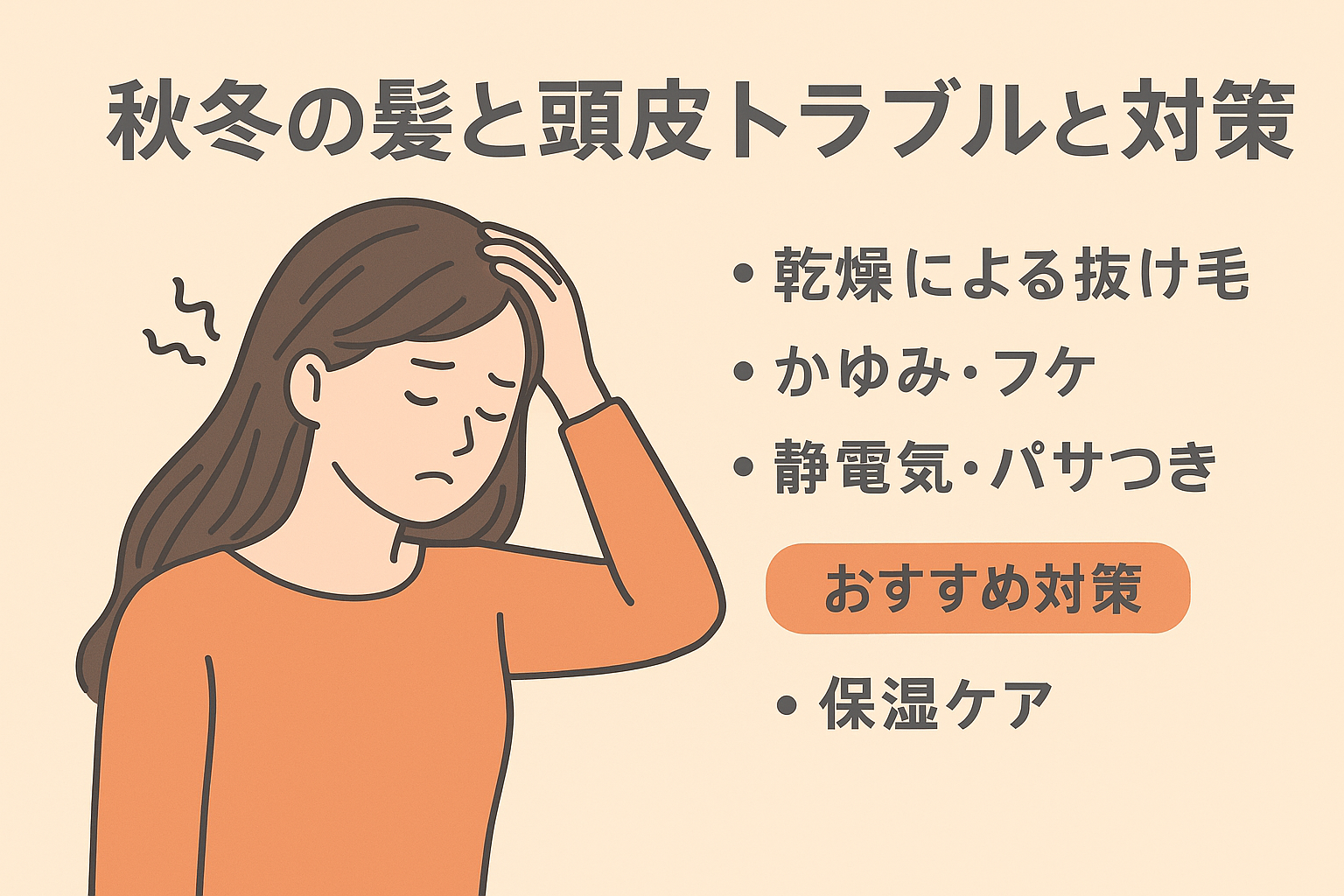 秋冬は冷えや乾燥で頭皮の血流が滞りやすく、抜け毛やかゆみの原因になります。