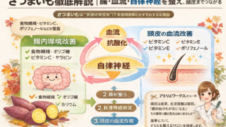 トレンド さつまいも徹底解説|腸・血流・自律神経を整え、頭皮までつながる理由 「さつまいも=炭水化物で太る?」 実はそれ、もったいない誤解かもしれません。 さつまいもは、腸内環境・血流・抗酸化・自律神経に関わる栄養が豊富。 ヘッドスパで外から整えるなら、食事で内側も整える。 美容理容師目線で... 2026.02.20 トレンド