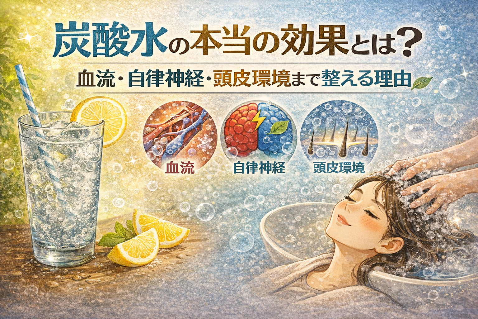 実は炭酸水は血流・自律神経・頭皮環境と深く関わっています。