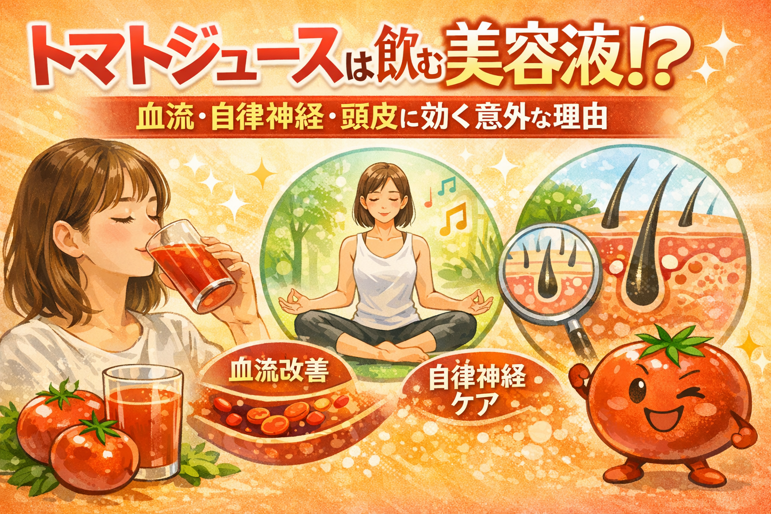 トマトジュースと血流|頭皮が硬くなる本当の原因
